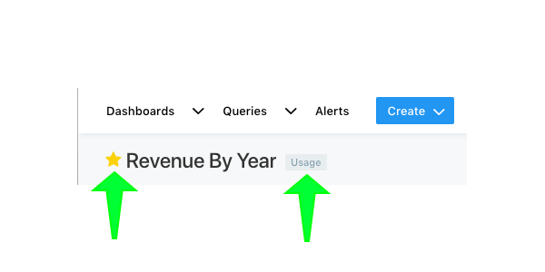 You can favorite a dashboard or query by clicking the star to the left of its title anywhere in DataReporter. The star will turn yellow to indicate success. Your favorites are displayed at several places in DataReporter. They appear on the homepage, in the navbar dropdown menus and as filters in the query or dashboard list views.