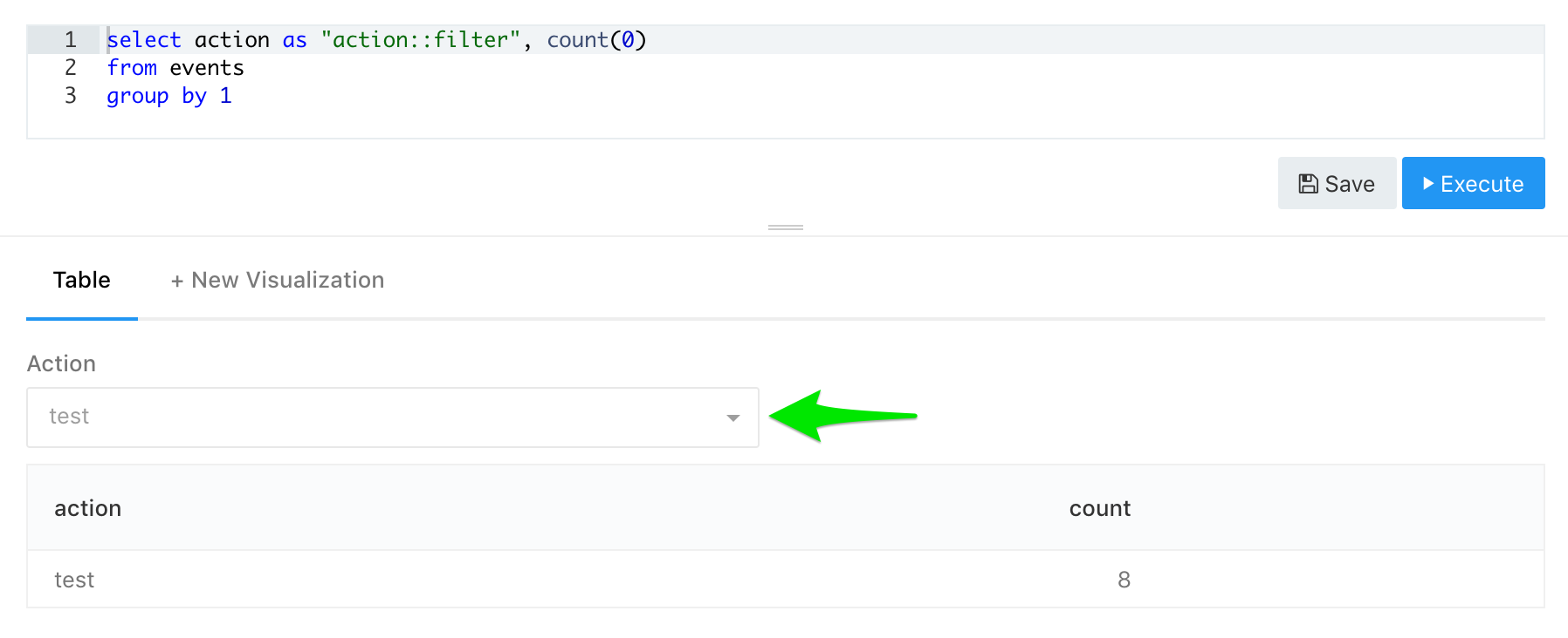 SELECT action AS "action::multi-filter", COUNT (0) AS "actions count"
