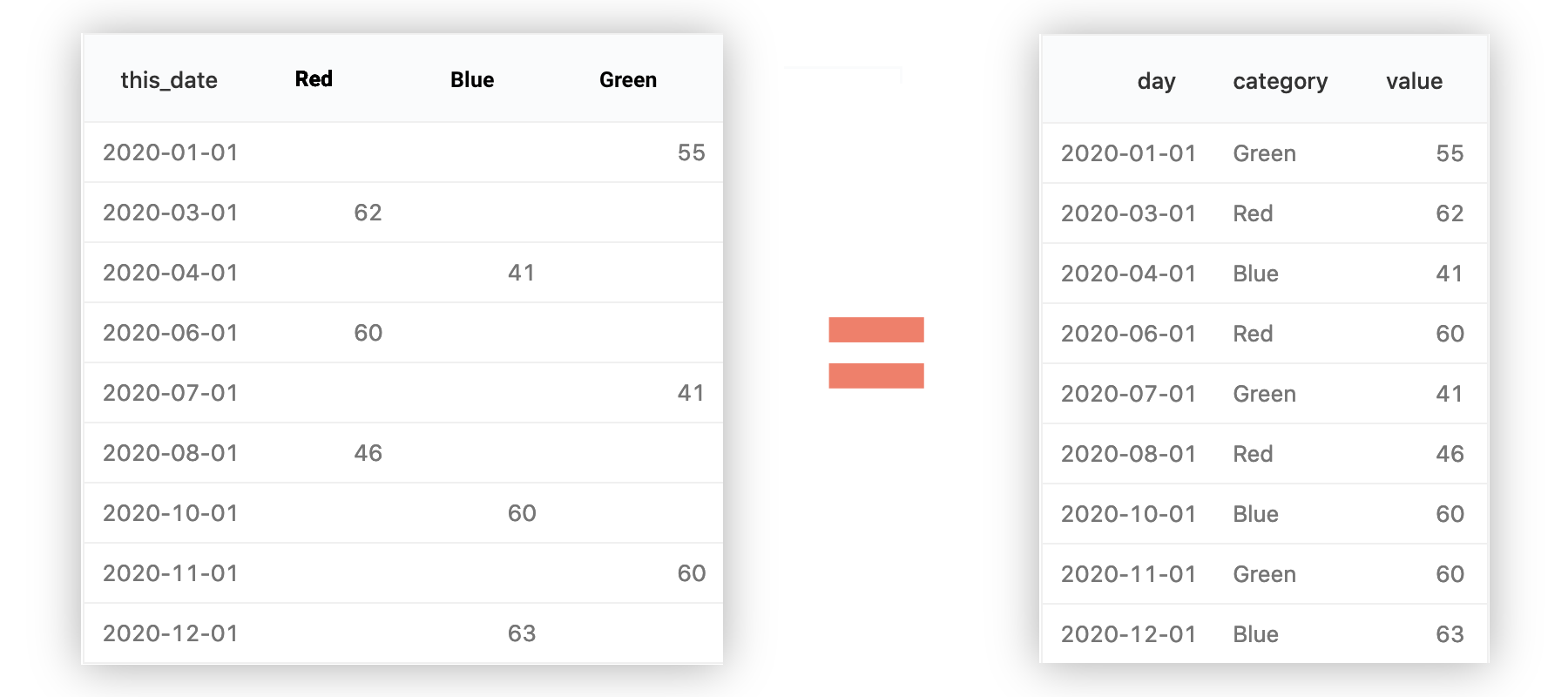 The charts in the above animation were all produced from the following tabular result: